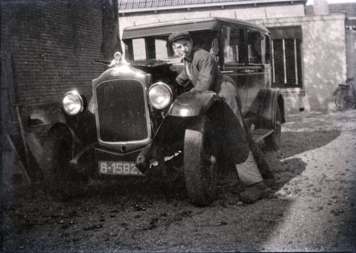 Eind 2014 kreeg ik bij het Bildts Documentatiecentrum een stapeltje oude Agfa negatieven in handen die waren ingebracht. “Wat moet je hiermee?”, was de vraag. Zo te zien waren de negatieven flink beschadigd maar toch waren er wel beelden te herkennen als je de negatieven tegen het licht hield. Het maakte mij nieuwsgierig omdat er ook nogal wat mensen op stonden. Ik heb de negatieven toen meegenomen en gescand om er een positief beeld van te maken. Na wat fotobewerking kwamen er over het algemeen aardige beelden te voorschijn. De foto’s heb ik toen in de beeldbank van Minnertsga vroeger gezet met de bedoeling dat anderen ons konden helpen om namen bij de personen op de foto’s te krijgen of aan te geven waar sommige foto’s zijn gemaakt. Dat is aardig gelukt. Een aantal negatieven hebben betrekking op familieleden van Willem Jetze Hogerhuis en Tjitske Haima die op 29 mei 1941 in het huwelijk zijn getreden. Daarmee hebben die negatieven in ieder geval meer waarde gekregen. Maar er blijven nog een aantal onbekende foto’s over. Tot deze week, toen Klaas Struiksma reageerde op twee onbekende foto’s. Op de ene foto staat een man naast een auto waarvan hij de motorkap open heeft. Het lijkt erop dat hij verstand van auto’s heeft en ziet er uit als een monteur. Het kenteken is duidelijk te herkennen. Ik had bij de onbekende foto gezet dat het kenteken van de auto was afgegeven aan Simon Harmani in Minnertsga. Klaas reageerde met de mededeling dat volgens hem de foto was gemaakt achter de garage aan de Meinardswei waar Swierstra vroeger zijn bedrijf had. Op de achtergrond van de foto is de woning te zien waar Goffe en Annie Elsinga hebben gewoond en later Harm en Djoke de Vries. En warempel . . . . de uitbouw aan die woning is nu nog duidelijk te herkennen als de erker op de foto van Google View. Simon Harmani had inderdaad een garage aan de Meinardswei. Hij heeft zich daar in 1929 gevestigd. De auto’s kwamen in opkomst en werden ook te huur aangeboden. Simon zal er ook een of meer hebben gehad. Hij had ook een benzinepomp bij zijn garage en verkocht benzine van Mobiloil. Simon is geboren op 26 februari 1903 in Winsum (gemeente Loppersum). Hij trouwde op 26-jarige leeftijd met de in Minnertsga geboren en toen 23-jarige Dieuwke, dochter van Anne Vogel en Sijtske de Vries. Het huwelijk werd voltrokken op 30 mei 1929, het jaar dat hij zich als garagehouder in Minnertsga heeft gevestigd. Op een oude ansichtkaart staan twee auto’s voor de garage van Simon Harmani. Door de ansichtkaart flink uit te vergroten, zie ik dat voorste auto wel heel veel lijkt op de auto waarvan Simon de motorkap open heeft. Het zonnescherm boven het voorraam is ook duidelijk te zien op de voorste auto die voor de garage staat. Nog geen 10 jaar later vertrekken Simon Harmani en Dieuwke Vogel met hun drie kinderen: Pieter, Trijntje en Klaas naar Huizum. Hoe het […]
