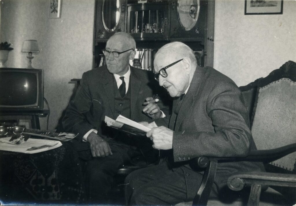 Onder deze ‘krantenkop’ kwam ik het hierna volgende artikel tegen en het leek mij zeker de moeite waard om dat hier op Minnertsga vroeger te plaatsen. Douwe, de man waar het in het artikel overgaat, is op 24 juli 1916 geboren in Minnertsga als zoon van Adam Gerrits Elsinga en Trijntje de Boer. Hij komt uit een gezin van zeven kinderen en was al op jonge leeftijd organist in de toenmalige Nederlands Hervormde Kerk (Meinardskerk). Hij trouwde met Sietske Bierma (1918-2015). De zwart/wit foto’s komen uit eigen archief. De kleurenfoto hoort bij het artikel. “Heeft hij de bel wel gehoord?”, zo vraag ik me af. Ik aarzel om opnieuw aan te bellen. Dat lijkt zo gehaast. Bovendien was een afspraak voor dit tijdstip gemaakt. Maar dan gaat de voordeur van Wingerd 15 in Vroomshoop toch open. “Het lopen gaat allemaal niet meer zo vlug”, verontschuldigt Douwe Elsinga zich. Dat lijkt dan ook het enige wat niet zo goed gaat bij deze helder van geest overkomende hoogbejaarde Vroomshoper. Eind juni vierde hij nog samen met zijn vrouw, kinderen, klein- en achterkleinkinderen dat ze 70 jaar getrouwd waren. Voor de nieuwe burgemeester Cornelis Visser was het zijn eerste bezoek aan inwoners van Twenterand. Vanaf 1957 wonen ze al in Vroomshoop. Nu het lichamelijk bij dit echtpaar minder wordt en de hulp steeds intensiever nodig blijkt, verhuisden ze deze zomer naar ’t Liefferdinck in Den Ham. Douwe Elsinga is een veelzijdig man. Ik werd gevraagd met hem te spreken over zijn verleden bij de coöperatie. De vader van Douwe Elsinga had een landbouwbedrijf in Barradeel, Friesland. De jaren dertig van de vorige eeuw waren slecht. Daarom begon Elsinga als commercieel vertegenwoordiger granen van de landbouwcoöperatie in Franeker. Hij ging de boer op voor gerst, tarwe, haver en erwten. Daana werd hij directeur van een coöperatie in Hoofddorp. Daar was het niet altijd even gemakkelijk. “Om elk dubbeltje liepen de boeren weg.” Door zijn voorganger, die naar de polder ging, werd Elsinga in 1957 gevraagd directeur te worden van de Coöperatie ‘Ons Belang’ in Vroomshoop. Gelijk bij de eerste ontmoeting (“Het waren pittige lui”) leek het goed en werd verhuisd naar Vroomshoop. Elsinga weet nog goed te vertellen hoe hij zijn eerste bestuursvergadering meemaakte in hotel Tebberman. “We zaten rond een potkachel, waar de één na de ander een turf ingooide. Het was een verademing hoe het er hier aan toe ging. Dit in grote tegenstelling tot de vergaderingen in de Haarlemmermeer. Aanvankelijk maakten boeren deel uit van het bestuur. Dat veranderde toen de functies zwaarder werden. Ik kreeg een auto van de zaak en moest de bestuursleden daarom voor een vergadering eerst ophalen van huis. Later kwamen ze zelf met de auto.” Bij de Vroomshoopse coöperatie ging het eerst om granen als rogge en haver en later tarwe en gerst, maar vooral toch om fabrieksaardappelen. Elsinga: “Ik had alleen te maken met aankoop pootgoed en niet met het afzetten.” De boeren hadden aandelen in de fabrieken van Avebe. Met de grote verscheidenheid aan […]