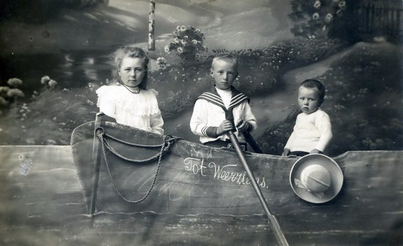 In het begin van de jaren ’80 ben ik begonnen met mijn onderzoek naar de familiegeschiedenis van de Zoodsma’s en de Bouma’s. Later kwam daar het onderzoeken van de dorpsgeschiedenis van Minnertsga nog bij. In die tijd heb ik een keer een bezoek gebracht Gerrit Bierma (1911-1983) en zijn vrouw die toen in Heerenveen woonden. Gerrit zijn moeder was Jantje Zoodsma en die Jantje was een zuster Sipke Zoodsma, de ‘pake’ van mijn vrouw. Toen ik daar was kwamen de oude foto’s op tafel. Mijn bezoek heeft Gerrit Bierma toen kennelijk inspiratie gegeven om een verhaal in het Fries te schrijven over een van de foto’s die hij mij toen liet zien. Hij heeft zijn verhaal laten publiceren in de Leeuwarder Courant dat hieronder is overgenomen. Omdat niet iedereen de Friese taal kan lezen ben ik zo vrij geweest om het over te zetten in het Nederlands. De nieuwe hoed mocht ook op portret Het was in de zomer van 1914, vakantietijd, voor zover men in die dagen over vrije dagen kon beschikken. Onze muoike Aukje, een niet getrouwde zuster van onze vader, was bij ons te logeren en dan was het altijd groot feest. Zij was ergens in Holland dienstmeid bij, wat men toen zo noemde, grutte lju en kwam een paar keer per jaar terug naar de familie in Minnertsga. Mijn beppe [Red. Dirkje Pieters Bakker (1839-1917)] leefde toen nog. Zo gingen wij zeker een keer per jaar met muioke naar de stad dat dat was op zichzelf al een grote belevenis. Wij reisden dan met de tram en moesten helemaal naar de Mooie Paal toe lopen, maar dat hadden wij er graag voor over. Maar deze keer zouden mijn vader en moeder ook mee en dat was een bijzonder gebeuren., want wij gingen met paard en wagen. Mijn vader mocht het glêzen weintsje en het rijpaard van oom Sipke gebruiken. Oom Sipke had een voermanderij en met wel acht paarden. Dit mooie glazen koetsje noemden wij it trouwweintsje omdat het veel bij trouwerijen werd gebruikt. ’S ochtendsvroeg stonden wij al klaar en konden we haast niet wachten. Toen het dan zover was, kwamen de vrouwen achterin te zitten en de jongens mochten bij vader voorin. Het was goed weer en als het begon te regenen, dan konden wij de voeten onder het leren dekkleed steken. De zweep stond trots in de houder en wij voelden ons verbaasd. Onze vader vertelde allemaal bijzondere dingen van wat wij voorbijkwamen. Toen wij van Berlikum naar Beetgum reden, vertelde hij dat de Beetgumer toren langzaam maar zeker weg zou zakken achter een boerderij met een rieten dak. En dat gebeurde ook! Wij vonden dat vreemd en zeer bijzonder. In Beetgumermolen even aansteken, want het paard moest ook even zijn ontspanning hebben in de Trochreed daar. Na twintig minuten konden we weer verder en een goed uur later waren wij in Leeuwarden. Het paard kwam op stal bij Jongma bij de Vrouwenpoortsbrug. Het glazenkoetsje bleef buiten staan. Toen wij in de jachtweide […]