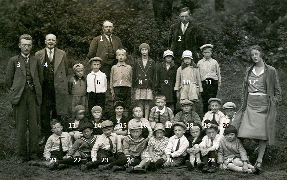 Begin dit jaar kwam ik mevrouw Hiemstra tegen in de Groate Kerk in St. Jacobiparochie bij ‘Op é strún’ van het Bildts documentatiecentrum. Zij liet mij prachtige foto’s zien van de familie Thijs van der Lei. Mevrouw Hiemstra is een kleindochter van de cafébaas Thijs van der Lei die uitbater is geweest in het Stationskoffiehuis, het café op de hoek Meinardswei – Stasjonsstrjitte. Als ik zoveel mooie foto’s zie die allemaal een relatie hebben met Minnertsga met de vroegere bewoners, dan wordt ik super blij. Zulke foto’s zijn een aanwinst voor het digitale monument van de onze dorpsbewoners. Ik begreep van mevrouw Hiemstra dat er al veel digitale foto’s ingeleverd waren bij het Bildts documentatiecentrum. Dat is mooi want dan worden ze goed bewaard, ik houdt daar als commissielid met andere commissieleden toezicht op. Maar eigenlijk horen die foto’s ook in de database thuis van de vroegere bewoners van Minnertsga. Daarom het ik mevrouw Hiemstra gevraagd of zij mij toestemming wilde verlenen om de foto’s ook op de website van Minnertsga vroeger te mogen publiceren. Dat was geen probleem en zij heeft mij toen een aantal foto’s toegestuurd. Hieronder een paar groepsfoto’s’. De foto’s van de familieleden Van der Lei volgen ook spoedig maar ik wil graag eerst over Thijs van der Lei nog een verhaal schrijven over hoe hij naar Minnertsga is gekomen en daar een café heeft overgenomen etc. Dus wordt nog vervolgd. Schoolreisje van de kinderen van de Openbare Lagere School op 17 juli 1931. 1. Douwe de Valk ?, 3. meester Terpstra, 8. Maartje van der Lei. Maar wie zijn de anderen? Dit is wel een heel bijzondere foto; dames op leeftijd en volgens de titel op het bord “Ons schoolreisje”. Wie herkent de dames op deze foto? Namen vlnr: 1. H. Kuipers, 2. Tet de Roos, 3. Dirkje Bloembergen, 4. M. Wiersma, 5. Amarens Landstra-De Boer, 6. L. Swart, 7. Tr. van der Wal, 8. B. Jensma, 9. Tine Hibma en 10. Neeltje Bonnema, 11. D. Westra, 12. merv. Nijholt, 13. J. Kerlien, 14. Aaltje Kalma, 15. Anna van der Lei-Feenstra, 16. Afke Kuipers, 17. D. de Valk, 18. mevr. Wassenaar, 19. J. Stapert, 20. E. de Vries, 21. T. Dusselaar, 22. Lolkje Dusselaar, 23. Ymkje Wetterauw, 24. A. de Vries, 25. mevr. Leicht en 26. mevr. Feitsma. (21-06-2015, mda mevr. T. Hiemstra). En dan deze foto. In deze woning hebben Ynse en Anneke de Boer gewoond. Wie weet wat meer te vertellen over deze woning en de bewoners, vraagt mevrouw Hiemstra zich af. Reacties op de foto’s kunt u eenvoudig doorgeven via het contactformulier (menuoptie Contact).