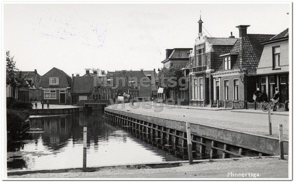 Op Minnertsga vroeger op Facebook heeft Titia Lindeboom een foto geplaats die zij aantrof op de website van Oud Tzummarum. Het is een prachtige mooie foto van de Meinardswei die omstreeks 1938 is gemaakt. Pieter Steensma, ook een Facebook-vriend van Minnertsga vroeger, reageerde op die foto. Hij herinnerde zich nog dat het betonnen brugje over de vaart een houten voorganger heeft gehad. Dus heb ik even gezocht in de collectie ansichtkaarten om een exemplaar die vanuit vrijwel dezelfde positie is gemaakt, maar wel met een flink tijd verschil. De Meinardswei komt op oude ansichtkaarten ook voor als: Voorsteek, Lange straat, Dorpsstraat, Hoofdstraat en Voorstraat. In november 1953 stemde de gemeenteraad over de straatnamen in vroegere gemeente Barradeel. Barradeel was toen de eerste gemeente in Friesland waar alle straatnamen in het Fries op de straatnaamborden werd vermeld. Meinardswei verwijst naar het kerkgebouw welke vroeger de naam had van “Meijnardus kerke” genoemd naar de heilige St. Meijnardus. Wat zien we op de foto hieronder? Geheel rechts staat de bakkerij van Sjoerd Boersma die later is overgenomen door bakker Luutsen Jelsma. Daarnaast de steeg waar je vroeger binnendoor naar het Greidsje, het feestterrein, kon lopen. Dan het pand waar vroeger Tjessinga in woonde die achter deze woning een chicorei-drogerij had. Later was in dit pand de groente- en fruitwinkel van Abe en Margje Vogel gevestigd. Daarnaast, de woning met balkon, was vroeger de woning van twee op een volgende burgemeesters. Eerst woonde burgemeester Lutzen Wallis de Vries er die de woning ook heeft laten bouwen. Hij werd later opgevolgd door burgemeester Bauke Annema. Daarna is de Christelijke Kleuterschool er een aantal jaren in gevestigd geweest. In het pand daarnaast was een kruidenierswinkeltje gevestigd van Rintsje-Klas zoals zij in de volksmond werd genoemd. Rintje van Dijk en zijn vrouw Klaske Hijlkema hadden in 1931 de winkel overgenomen van Klaske haar ouders. Het hoge pand daarnaast is nu café – snackbar ’t Centrum, maar was vroeger de herenkleding zaak van de fa. Schotanus. Net achter het betonnen brugje het kleine pandje van kaper Nijholt en links daarvan het gebouw Café Vriendschap dat later het gebouw van de Vrije Evangelische Gemeente werd. En dan . . . . de foto hieronder die omstreeks 1900 is gemaakt, dus bijna 40 jaar eerder. Wat allereerst opvalt is de opslag van materiaal op de kade en een schip en een paar pramen in de havenkom. De eerste stapel materiaal op de kade is waarschijnlijk baksteen en de tweede stapel is lange turf. De kade heeft hier nog een houten rand. Op de foto hierboven is die rand van beton. Waarschijnlijk is dat in 1911 gebeurd bij herstelwerkzaamheden van de kade. Ten opzichte van de vorige foto, staat de bakkerij van Boersma en net niet op. Het eerste pand rechts op deze foto, is de woning van Jelle Cornelis Tjessinga die ook eigenaar was van het pand naast hem. Het zijn twee identieke panden, alleen de plaats van de voordeuren wijkt af. Jelle Cornelis had een dochter Neeltje die later […]