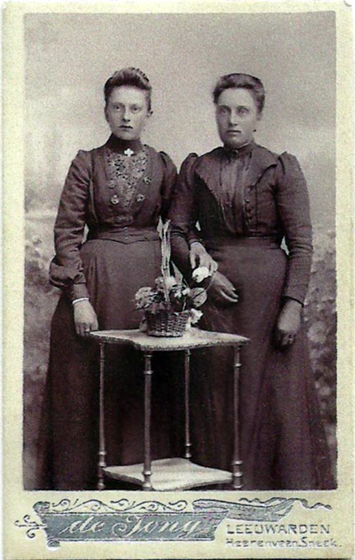 Op het artikel over Jaantje en Perkje is gereageerd door Klaas Groeneveld die nog met een aantal opmerkingen en een aanvulling kwam op het verhaal. Dank daarvoor. De beide âlde frijsters woonden niet op de locatie op de kruising Hoarnestreek – Langedijk, maar in de Hoven. Dus aan het eind van de Langedijk. Waarschijnlijk woonden zij in het ouderlijk huis van de Abbenga’s. De ouders van de vrijgezelle dames waren wellicht niet onbemiddelde, want zoals uit familieverhalen blijkt, kwamen er notabelen over de vloer. Dat zou ook kunnen verklaren waarom de dames inkomsten hadden. Jaantje en Perkje waren geen reislustige types, maar kennelijk hebben ze wel een keer een reis ondernomen naar een Leeuwarder fotograaf om er foto’s van hen zelf te laten maken. Die foto’s waren waarschijnlijk bedoelt als een soort van afscheidsfoto voor de twee tantezeggers die naar Amerika zijn geëmigreerd. Op latere leeftijd kregen de dames ondersteuning van de armmeester van de gemeente Barradeel die er later mogelijk ook voor heeft gezorgd dat zij in het armhuis (bejaardenhuis) kwamen in Tzummarum. De dames hadden mooie spullen, maar dat mocht uiteraard de armmeester niet zien bij een huisbezoek. Alles ging dan in de kelder en werd verstopt onder jute zakken. Ze hingen jute zakken aan de waslijn, zogenaamd hun beddengoed en vertelden dat ze daaronder sliepen. De armmeester geloofde het, en ze kregen steun uit de armenkas van de gemeente. Als Neeltje bij haar tante Perkje en Jaantje kwam, gebeurde het meermalen dat Perkje de mededeling deed (een gevleugeld familiegezegde werd dit): “Jaantje het ok weer un flauwte had”. In werkelijkheid, was ze onderuit gegaan nadat ze te diep in ’t glaasje had gekeken. Niemand ging vaak in bad in die tijd . . . . . . en ook deze dames niet. Maar, het regiem was strenger in het armhuis dan thuis in de Hoven. Of Perkje het bad niet heeft overleeft of dat zij het regime als te stressvol ervoer, is niet bekend, maar binnen een paar weken was zij dood en is toen begraven op het kerkhof van Minnertsga aan de zuidkant van de kerk.