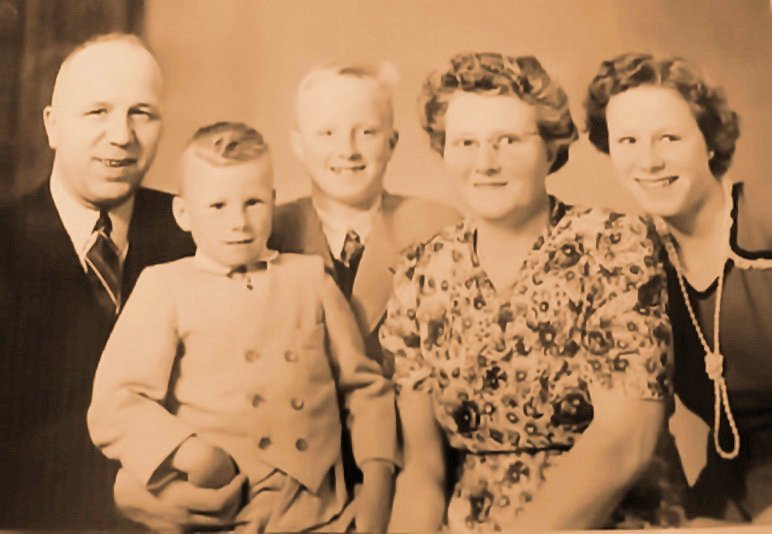 Deze week stuurde Henny Hijlkema uit Franeker een foto van het gezin van haar ‘pake en beppe’ Hijlkema. Hartelijk dank hiervoor. Ale Hijlkema wordt genoemd in het artikel: E-mailbericht uit 1915. Hij is een zoon van Wouter Hijlkema en Trijntje Sikkes Sikkema. Ale is geboren op 20 mei 1895 in Minnertsga. Op 24-jarige leeftijd trouwde hij met de 21-jarige Gelske Bies die op 1 juni 1898 in Garijp is geboren.Het echtpaar kreeg drie kinderen: Walter (1923), Pieter (1925) en Eibert (1928). Ale was (turf)schipper. Zijn schip heette ‘Op Hoop van Zegen’. Henny, de inzendster van de foto, is een dochter van Eibert Hijlkema en Tietje Hoekstra. Haar ouders zijn beide geboren in Minnertsga. Hieronder een detailschema van de familie.