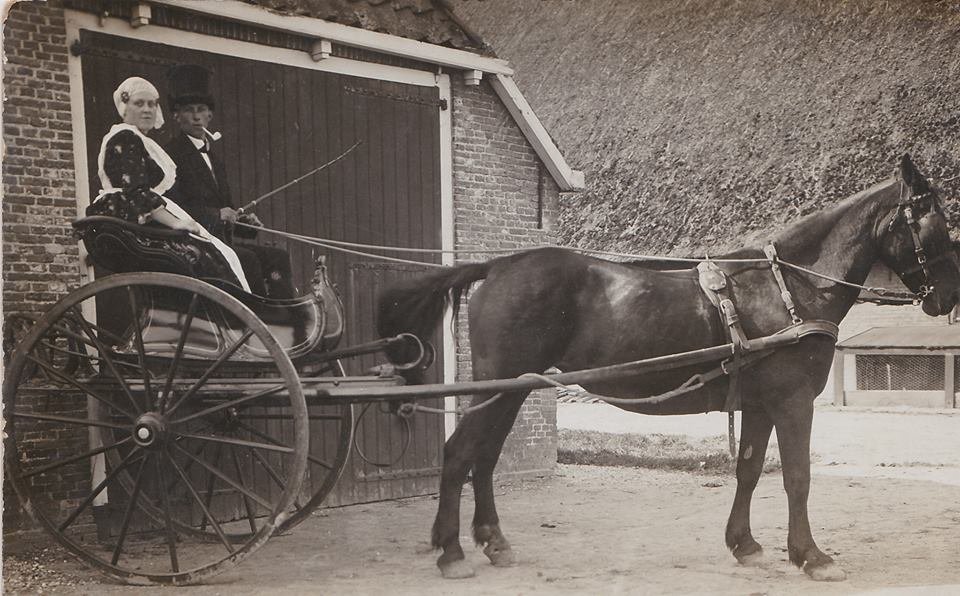 De gemoederen houden ons bezig met het achterhalen van de namen van de mensen in de sjees. Wie is toch dat jonge stel? Is het wel een stel of zijn het broer en zus van elkaar? Deze en nog meer vragen houden ons bezig. Ik spreek van ‘ons’ omdat Jelle Feenstra deze foto heeft aangeleverd en wij allebei graag willen weten wie er op staan. Dan krijgt de foto meer waarde; wat die foto overigens nu al heeft voor ons omdat we er zo mee bezig zijn. Wat weten we? De foto is gemaakt achter de boerderij van Johannes en Sijmentje Joostema-Meerstra aan de Tilledijk. Dat blijkt wel uit de foto die Wopke Klaver er bij heeft gezocht. Jelle Feenstra meld dat de foto uit het familiealbum (of schoenendoos) komt van zijn ‘heit’ die de foto heeft gekregen via de Boomsma-lijn. Daarom zou het wel eens mogelijk kunnen zijn dat het Martzen Boomsma en Jan Abrahams Joostema moesten zijn die in de sjees zaten. Maar is dat ook zo? Hoe is Boomsma gerelateerd aan Joostema? Martzen Gatzes Boomsma trouwde op 26-jarige leeftijd met de 25-jarige Jan Abrahams Joostema, zoon van Abraham Heins Joostema en Jeltje Pieters Steensma. Martzen is geboren op 13 januari 1867 en Jan Joostema op 13 oktober 1867. Maar Martzen en Jan hebben niet op de boerderij gewoond. Volgens het boek: ‘Gezinshoofden per adres. Minnertsga in de jaren ’20 en ’30’ heeft Dooitze Zwart de bewoners op adressen in kaart gebracht. In zijn boek wordt Willem Jelgerhuis als eerste genoemd op dit adres, opgevolgd door Adolf Jelgerhuis en later Johannes Joostema (en Sijmentje Meerstra) als bewoner. Het eerste kind van Johannes en Sijmentje word in 1924 in Firdgum geboren. Dan woont het jonge gezin dus nog niet in Minnertsga. Als hun tweede kind wordt geboren in 1926, dan woont het gezin in Minnertsga en met het oog op de gegevens uit het boek van Dooitze Zwart kan dat kloppen. Zijn de mensen in de sjees dan Johannes Joostema en Sijmentje Meerstra? Als we er van uit gaan dat de foto op of kort nadat Johannes en Sijmentje op de boerderij kwamen te wonen, dan zijn zij tegen óf rond de dertig. Naar mijn idee zijn de mensen in de sjees ook rond die leeftijd. Tot dusver heb ik dan ook geen andere reden om aan te nemen dat zij het niet zijn, temeer omdat Jan Abrahams Joostema en Martzen Boomsma een ‘omke en tante’ waren van Johannes Joostema. Het kan zijn dat ‘omke en tante’ een exemplaar hebben gekregen van deze prachtige foto. Koninginnefeest Ik laat bovenstaande tekst nog een paar dagen in mij omgaan en de vraag die mij voortdurend bezighoudt is, kan ik nog meer bronnen raadplegen die mijn gedachtegang kunnen bevestigen? Dan bedenk ik mij dat het niet een alledaags tafereel is, maar dat het wellicht met feestelijkheden heeft te maken. In die tijd, waarvan ik vermoed dat de foto is genomen, was het Koninginnefeest op 31 augustus een jaarlijks terugkerend […]