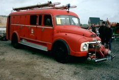 Minnertsgaaster brandweerauto (uit 1947) met handkracht gestart
