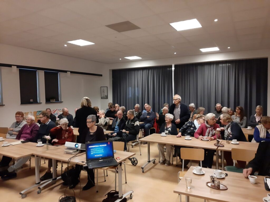 Dinsdagmiddag 19 november hebben Gerryt en Aalzen een serie beelden laten zien over de middenstand van vroeger in het dorp. In het gebouw de Twaskar zaten ruim 60 bezoekers te kijken naar een prachtige serie oude foto’s die groots werden geprojecteerd. Gerryt praatte de beelden uit vervlogen tijden aan elkaar. De middag was georganiseerd door de SWO (Stichting Welzijn Ouderen Het Bildt). In Minnertsga was vroeger, net zoals in veel andere dorpen, een bloeiende middenstand. Kruidenierswinkels, bakkers, slagers, groenteboeren, kappers en ga zo maar door. In Minnertsga waren vroeger vijf bakkers die allemaal probeerden hun producten aan de man de brengen. Maar de bloeiende middenstand in de dorpen is verleden tijd. Toen Rienik Post uiteindelijk de winkeldeur in 2004 sloot, zie hij: ‘Net sentimenteel wurde, it is sa’. Bij het zien van de beelden kwamen er veel herinneringen naar boven bij het publiek wat zeker was te merken. Want het och heden ja gevoel bleek wel uit de opmerkingen en aanvullingen die Gerryt van het publiek kreeg. Het was een zeer geslaagde middag die zeker voor herhaling vatbaar is, maar dan met een ander verhaal en veel beelden over Minnertsga vroeger.