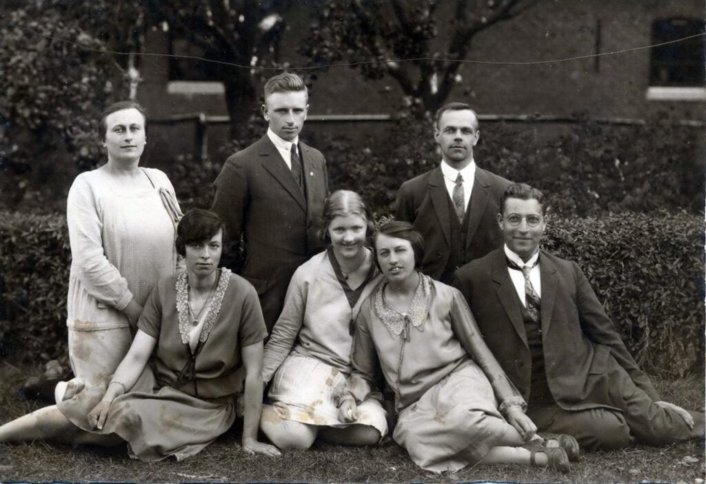Veel Minnertsgaaster liefdes zijn ontstaan op de Moaie Peal. De Moaie Peal was vroeger een broedplaats waar prille liefdesverhoudingen ontstonden. Jongens en meiden uit de dorpen Minnertsga, Wier, Berlikum en St. Jacobiparochie zochten elkaar daar op. Niet ver van de Moaie Peal woonden Frits Jensma (1890-1981) en zijn vrouw Antje Zoodsma (1893-1965). Bij hun thuis is vroeger ook een prille liefdesverhouding ontstaan tussen twee mensen die veel verder weg kwamen dan de klokslag van Minnertsga. Frits en Antje hadden een jonge onderwijzer uit Hijlaard in de kost en zij waren ‘pleegouders’ van een jonge dame uit Hamburg die ook bij hen in de kost was. De jonge onderwijzer werd verliefd op de jonge dame uit Hamburg waar hij later mee in het huwelijksbootje is gestapt. Wat is de aanleiding van dit verhaal? In maart dit jaar stuurde mevrouw Smidstra-Krikke een foto naar ons toe van het muziekkorps Oranje dat over de Meinardswei marcheerde. Het bleek een momentopname te zijn uit de jaren ’20 van de vorige eeuw. Dit jaar is het 125ste jaar dat de Christelijke Muziekvereniging Oranje bestaat, dus een mooie gelegenheid de foto op Facebook te zetten. Uit de mailwisseling met de inzendster bleek dat zij nog meer foto’s had van Minnertsga. Zij was aan het opruimen en had ook een stapel foto’s bij het oud papier gegooid. Met het oog op de foto’s die zij mij via de mail stuurde, was mijn vermoeden dat in die stapel bij het oud papier nog wel eens mooie foto’s konden zitten die voor Minnertsga vroeger nog veel waarde hebben. Ik heb haar gevraagd of wij die foto’s mochten hebben om te kijken of er nog waardevolle foto’s bij zitten. Mevrouw Smidstra-Krikke is de oudpapierbak ingedoken en heeft vervolgens de foto’s naar ons toegestuurd. Toen ik de stapel foto’s kreeg haalde ik er meteen al enkele tussen uit met voor mij bekende personen. Mevrouw Smidstra-Krikke haar schoonmoeder was IJke Zoodsma (1918-1998) geboren in Minnertsga en de foto’s kwamen uit de nalatenschap van haar schoonmoeder. Geen wonder dat ik meteen al wat Zoodsma’s herkende. Bij bestudering en de gezichten vergelijken van de foto’s, bleek dat ik steeds meer foto’s in samenhang en gezinsverband kon plaatsen. Maar een van de foto’s herkende ik meteen als een bekend exemplaar die ook in het jubileumboek: Yn ‘e spegel 1896-1994, 125-jier kistlik ûnderwiis Minnertsgea staat afgedrukt. En nu had ik dus een haarscherp origineel in handen, dankzij mevrouw Smidstra-Krikke die ook dit exemplaar weer uit het oud papier had gehaald. Personeel Christelijke Lagere School Op de foto in het jubileumboek Yn ‘e spegel staat een foto van het onderwijzend personeel. Het precieze moment dat de foto is gemaakt is niet bekend, maar dat moet zijn gebeurd tussen 1926 en 1929. Rechts achter op de foto staat meester Jan Sijtsma. Hij wordt in 1926 aangesteld als onderwijzer. Jan is dan 24 jaar en komt in de kost bij Frits en Antje Jensma-Zoodsma op Moaie Peal want iedere dag van Hijlaard naar Minnertsga rijden in die tijd […]