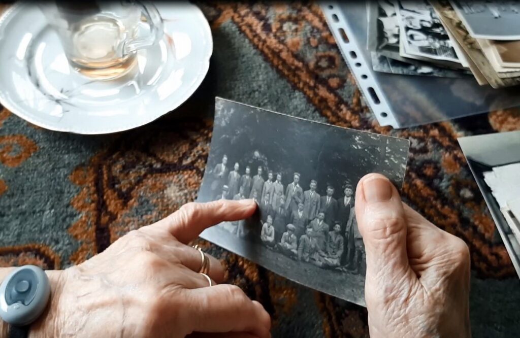 Op zaterdagmiddag 13 juli jl. zijn Aalzen en ik op bezoek geweest bij de oudste inwoner van Minnertsga, Afke Faber – de Groot. Daar was ook muoike-sizzer Djoke Nauta bij aanwezig en met z’n allen hebben we een flinke stapel foto’s van Afke bekeken. De tafel lag vol! Afke had over bijna alle foto’s wel een verhaal te vertellen en zij wist feilloos de namen van de personen op de foto’s te benoemen. Die verhalen hebben we op video vastgelegd zodat we in alle rust op een later moment de foto’s kunnen beschrijven. We mochten een flinke hoeveelheid foto’s meenemen om te scannen. Dat is inmiddels gebeurd. Een aantal foto’s zijn al beschreven maar er moeten nog meer worden gedaan. Die zaterdagmiddag in juli was eigenlijk te kort en volgens ons hebben we nog maar de helft van de foto’s gezien. Binnenkort zullen we een vervolgafspraak maken om ook de verhalen van de rest van de foto’s vast te leggen. Gerrit en Aalzen